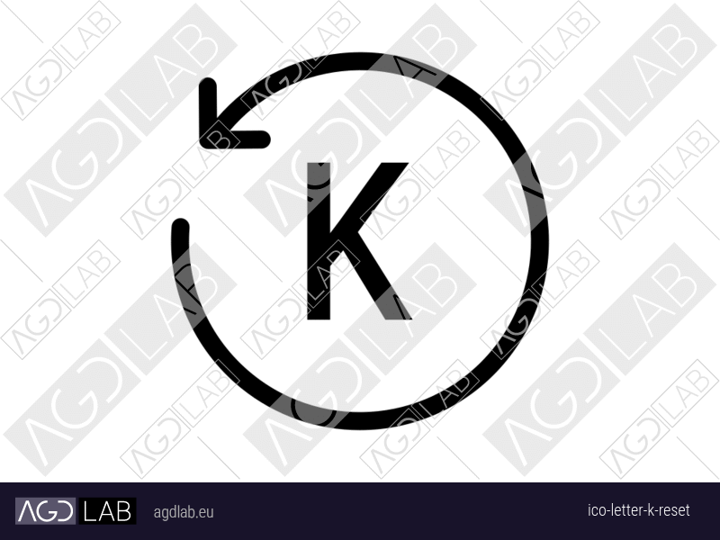 Icon with letter K and circular arrow pointing left. Indicates eleventh item. Indicates resetting values, restarting processes, or clearing content. Used in status visualization interfaces, control systems, and information hierarchies emphasized within a reset circle with left arrow.