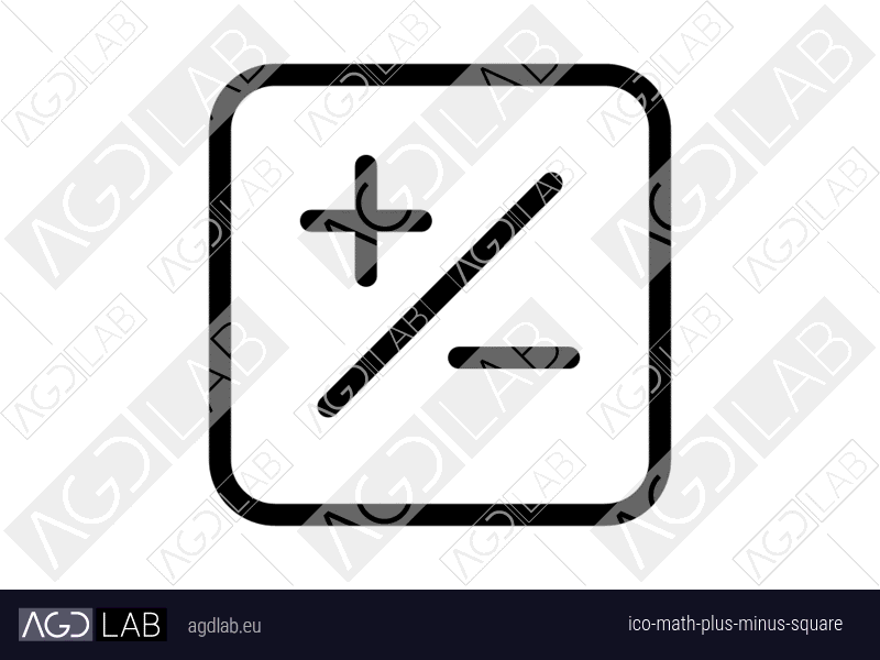 Icon with mathematical and plus sign and minus symbol in circle and square, figure with four straight sides. Represents arithmetic tools Used for removing items, decreasing values, or collapsing content. Represents action buttons, containment areas, or selection tools. Used in industrial calculation, measurement control and computational process interfaces.