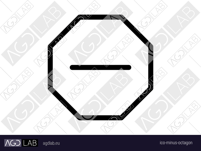 Icon with minus symbol in circle and octagon, figure with eight straight sides. Used for removing items, decreasing values, or collapsing content. Represents stop signals, important notices, or system controls. Used in status visualization interfaces, control systems, and information hierarchies emphasized within an octagon/stop shape.
