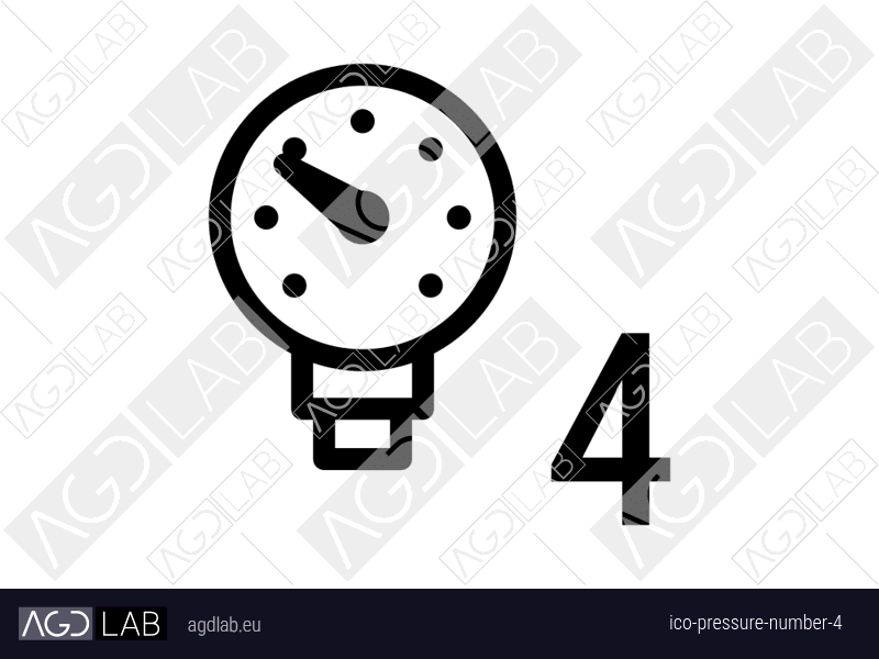 Icon with pressure gauge or meter symbol and number 4. Used in pressure monitoring, safety control, industrial measurement and pneumatic or hydraulic systems. Shows fourth value or quadruple items. Used in pressure monitoring, safety control, industrial measurement and pneumatic or hydraulic systems.