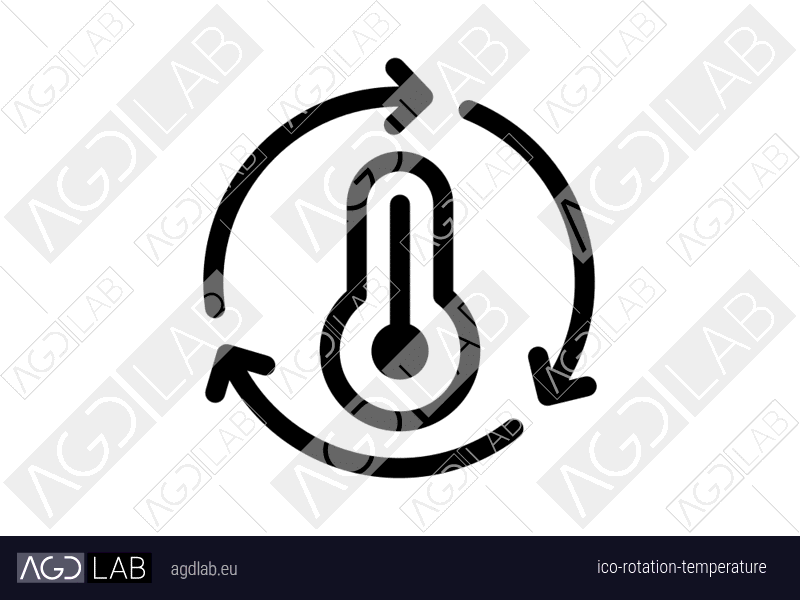 Icon with three rotating arrows and thermometer symbol. Used in rotational control, angular adjustment, orientation correction, and movement management systems. Used in thermal/temperature monitoring, climate control, and environmental management systems. Used in rotational control, angular adjustment, orientation correction, and movement management systems.