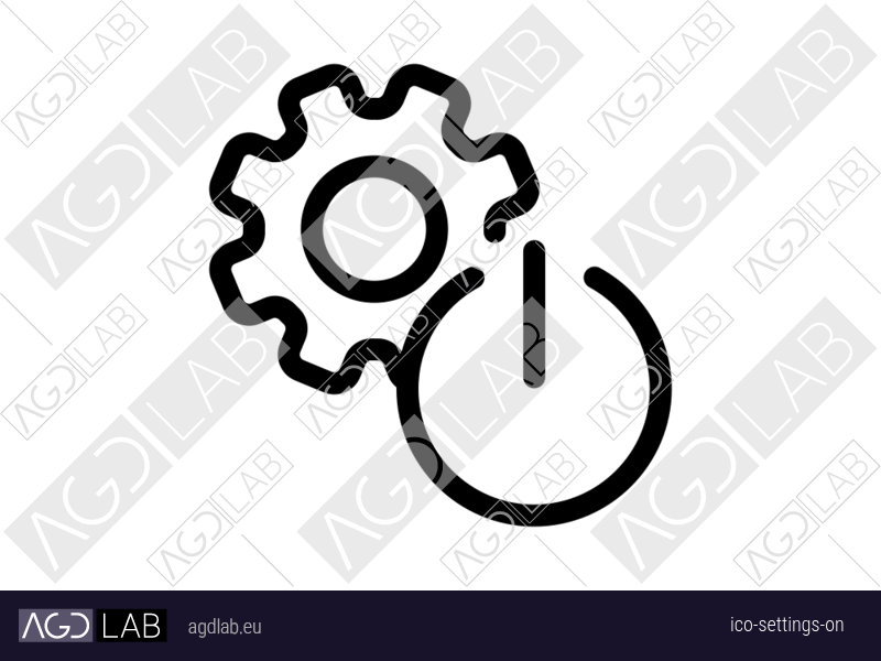 Icon with gear or cog wheel icon and power button or on switch. Used in settings management, adjustment, customization, preferences, options, system configuration and process control interfaces. Indicates power status, starting processes, system activation, or feature enablement. Used in settings management, preferences, options, system configuration and process control interfaces.