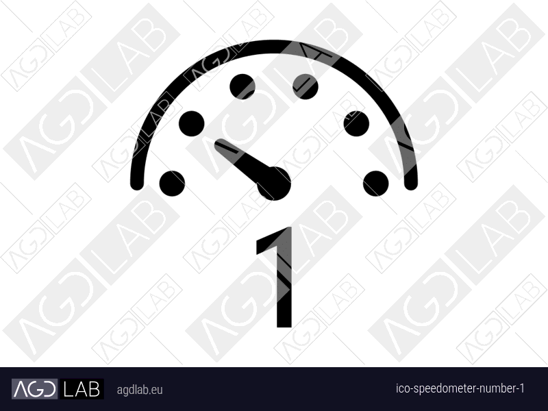 Icon with speedometer, gauge and number 1. Shows first value, primary option, or single item. Used in pressure monitoring, safety control, industrial measurement and pneumatic or hydraulic systems. Also used in performance monitoring, speed control, timing and optimization management systems.