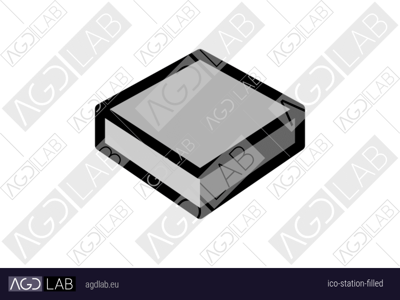 Icon with isometric view of a flat, slightly elevated plane or surface and solid filled. Used in station/surface monitoring, process control and equipment management interfaces. Represents selected states, active elements, or completed items. Used in station/surface monitoring, process control and equipment management interfaces.