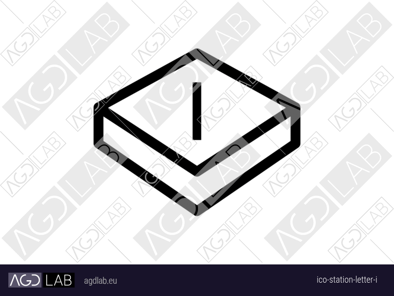 Icon with isometric view of a flat, slightly elevated plane or surface and letter I. Used in station/surface monitoring, process control and equipment management interfaces. Shows ninth item. Used in station/surface monitoring, process control and equipment management interfaces.
