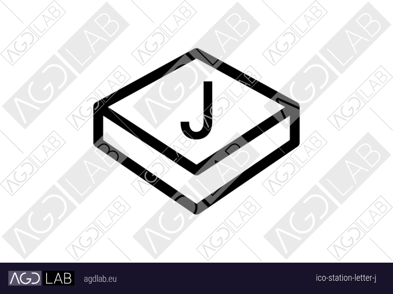 Icon with isometric view of a flat, slightly elevated plane or surface and letter J. Used in station/surface monitoring, process control and equipment management interfaces. Represents tenth item. Used in station/surface monitoring, process control and equipment management interfaces.