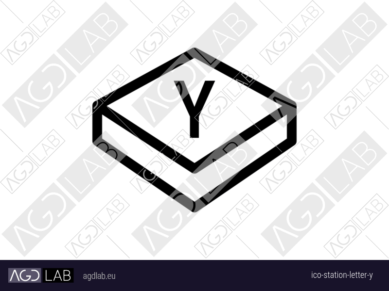 Icon with isometric view of a flat, slightly elevated plane or surface and letter Y. Used in station/surface monitoring, process control and equipment management interfaces. Represents y-axis, binary choices. Used in station/surface monitoring, process control and equipment management interfaces.